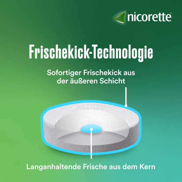 Erste Linderung deines Rauchverlangens mit nicorette® Lutschtabletten ab 2 Minuten. Dank der Frischekick-Technologie setzt die äußere Schicht der Lutschtablette einen sofortigen Frischekick frei. Die langanhaltende Frische stammt aus dem Kern der Lutschtablette.