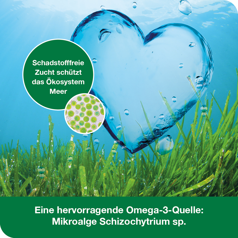 - Rein pflanzlich: Algenöl und Kapseln sind 100 % vegan