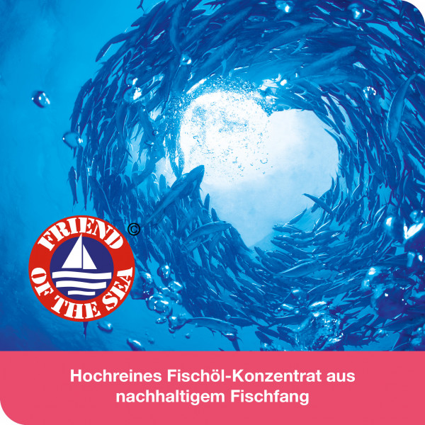Fischöl. Omega-3-Säuren-reich, Ethylcellulose, Natrium alginat, Sonnenblumenöl, Icosapent, Doconexent, (R.R.R)-α-Tocopherol, (R.R.R)-α-Tocopherol-Äquivalent, Gelatine vom Rind, Glycerol