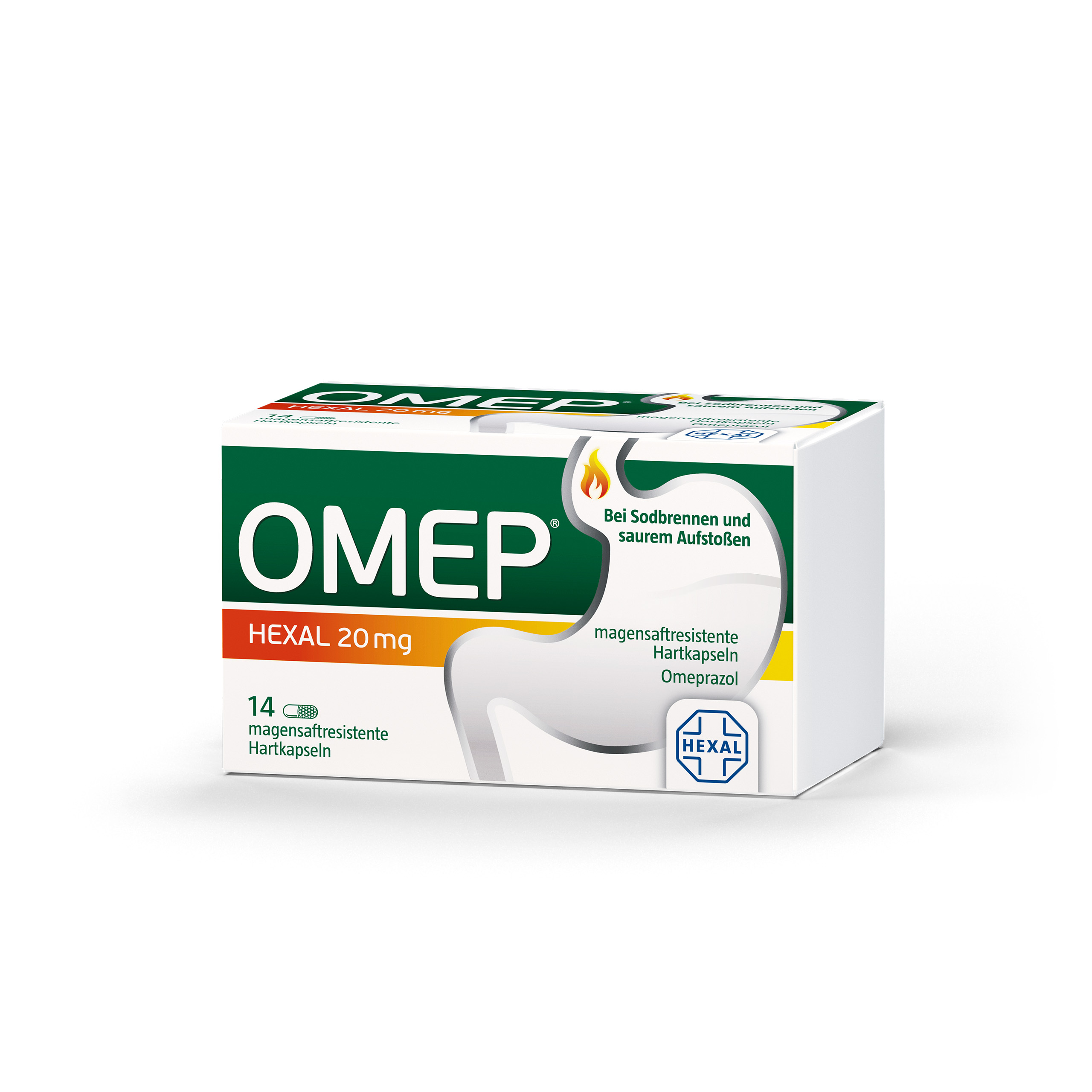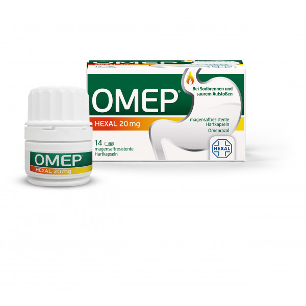 OMEP® HEXAL 20 mg, magensaftresistente Hartkapseln : Wirkstoff: Omeprazol. Anwendungsgeb.: kurzzeitige Behandlung von Refluxbeschwerden (z. B. Sodbrennen, Säurerückfluss) bei Erwachsenen. Enthält