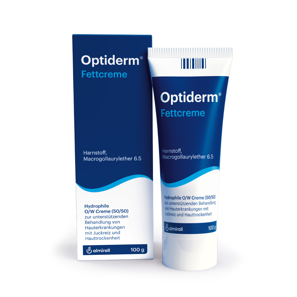 Optiderm Fettcreme verfügt über einen hohen Lipidanteil für die Juckreizlinderung bei besonders trockener Haut. Optiderm Fettcreme ist eine Öl-in-Wasser Formulierung mit 50% Lipidanteil. Die reichhaltige Fettcreme hinterlässt ein angenehmes Hautgefühl und entspannt die Haut merklich. Sie ist frei von Konservierungsmitteln, Duft- und Farbstoffen.