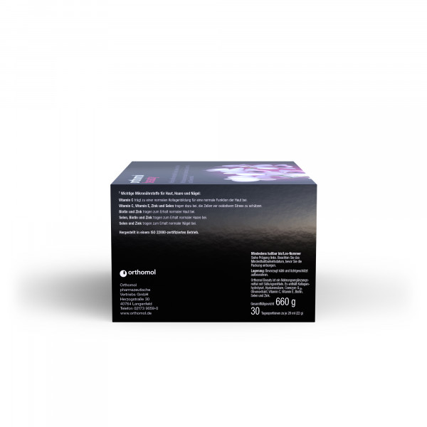 Orthomol Beauty ist ein Nahrungsergänzungsmittel. Mit Biotin und Zink zum Erhalt normaler Haut und Haare.
