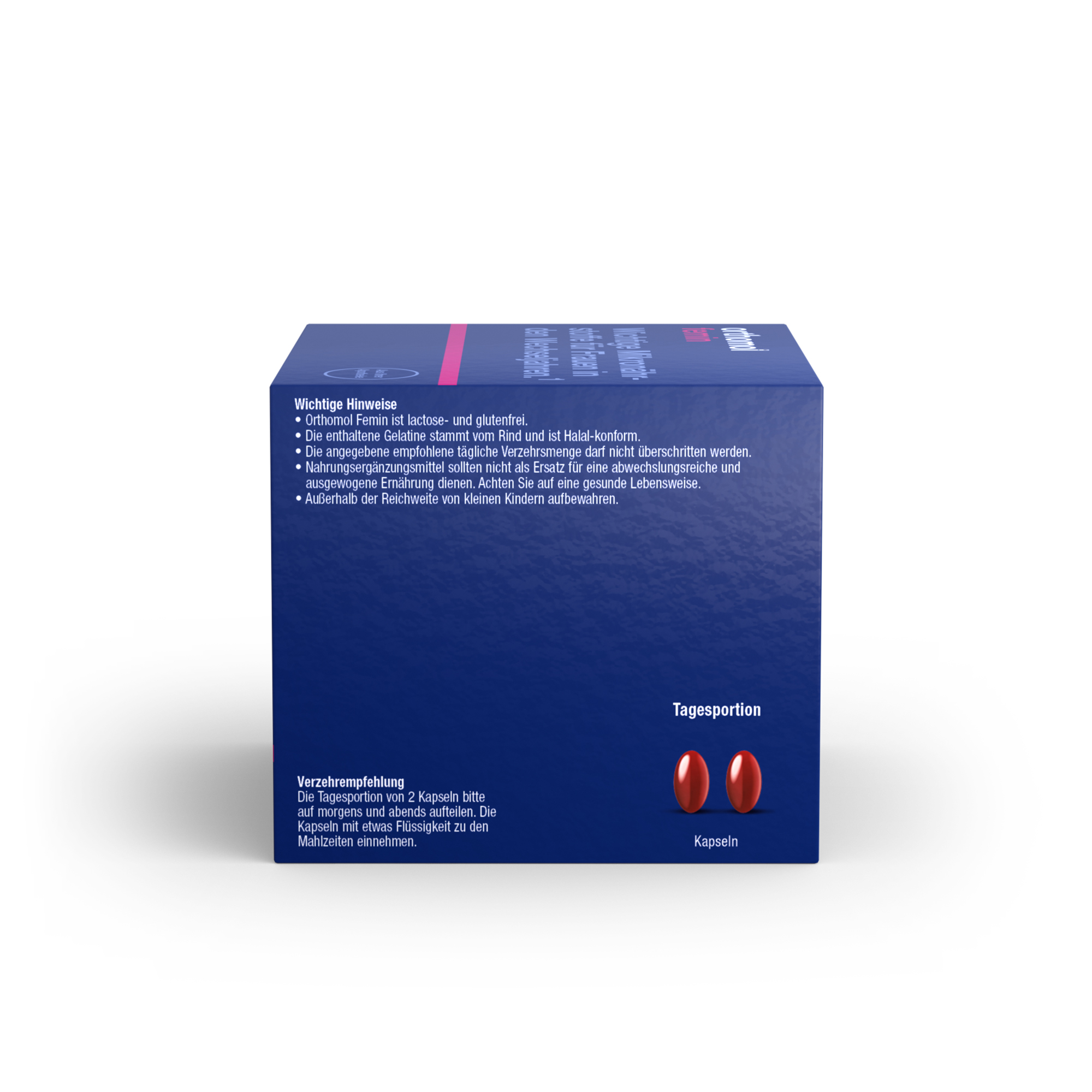 Orthomol Femin ist ein Nahrungsergänzungsmittel für Frauen in den Wechseljahren. Wichtige Nährstoffe für Haut, Haare und Nägel. Mit Biotin zum Erhalt normaler Haut und Haare sowie Selen zum Erhalt normaler Nägel. Mit Isoflavonen aus Soja und Lignanen aus Leinsamen, wichtigen Fettsäuren und Coenzym Q10.