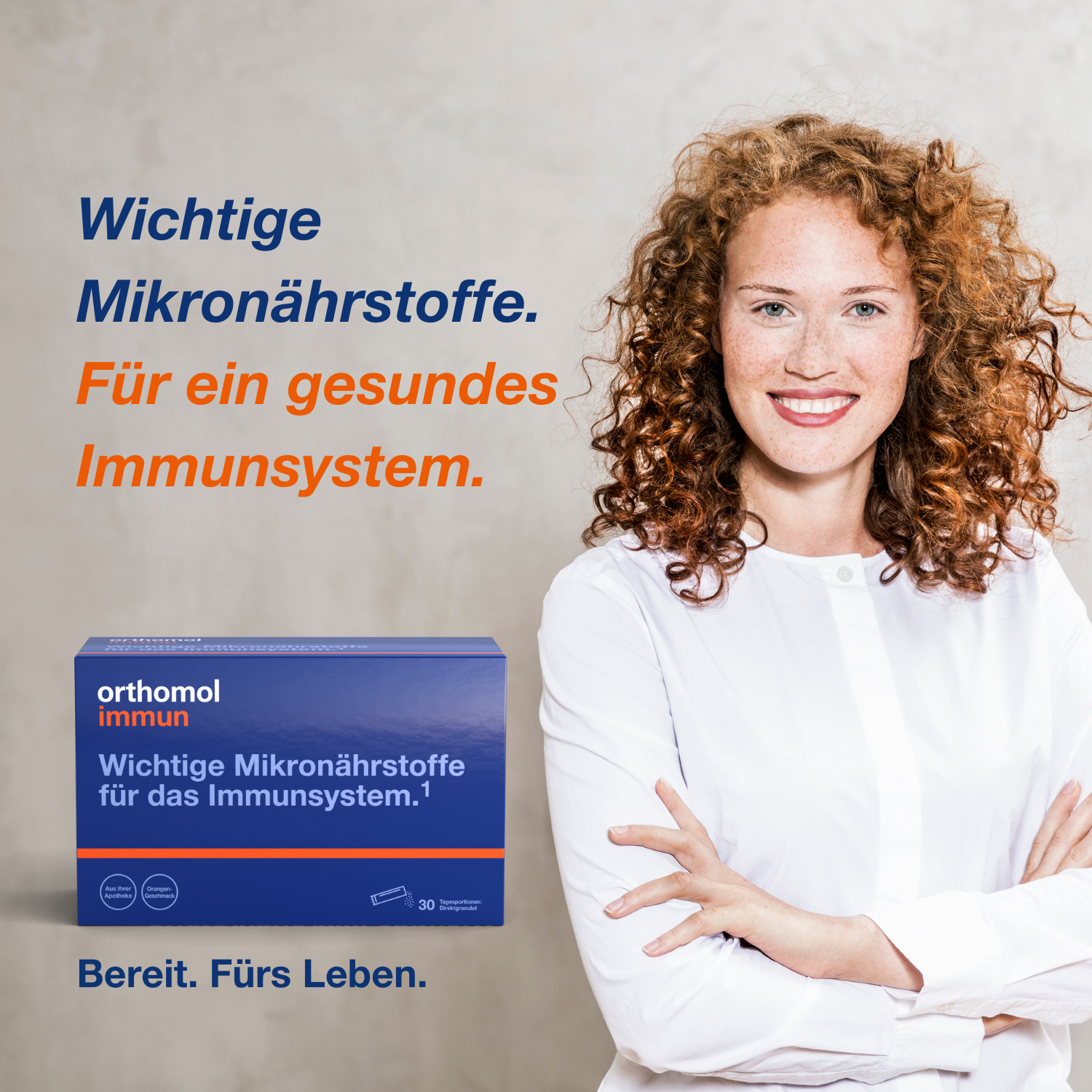 Orthomol Immun ist ein Lebensmittel für besondere medizinische Zwecke (bilanzierte Diät). Zum Diätmanagement bei nutritiv bedingten Immundefiziten (z. B. bei rezidivierenden Atemwegsinfekten).