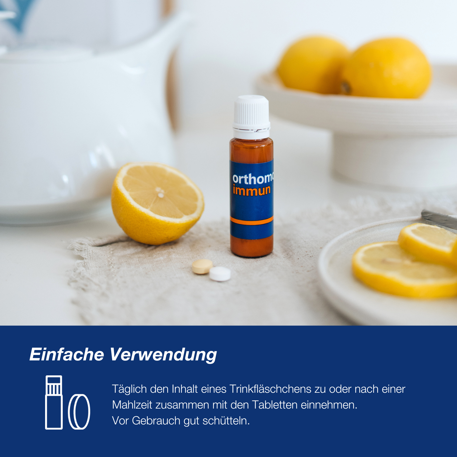 Orthomol Immun ist ein Lebensmittel für besondere medizinische Zwecke (bilanzierte Diät). Zum Diätmanagement bei nutritiv bedingten Immundefiziten (z. B. bei rezidivierenden Atemwegsinfekten).