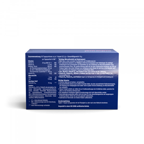 OrthomolNahrungsergänzungsmittel sind kein Ersatz für eine ausgewogene und abwechslungsreiche Ernährung und eine gesunde Lebensweise. Die angegebene empfohlene tägliche Verzehrsmenge darf nicht überschritten werden. Außerhalb der Reichweite von kleinen Kindern aufbewahren.