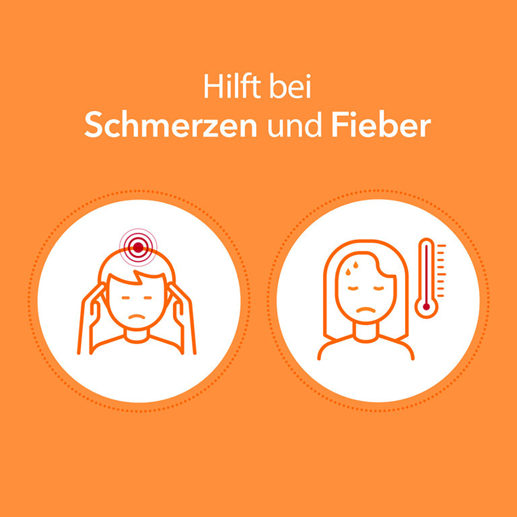 - Wirkt bei Kopfschmerzen, Regelschmerzen, Zahnschmerzen und Fieber.