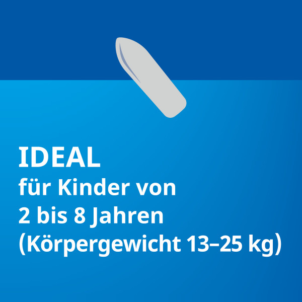 Kleinkinder von 2-4 Jahren mit 13-16&nbsp;kg Körpergewicht 1 Zäpfchen 1-3 mal täglich im Abstand von 6 Stunden