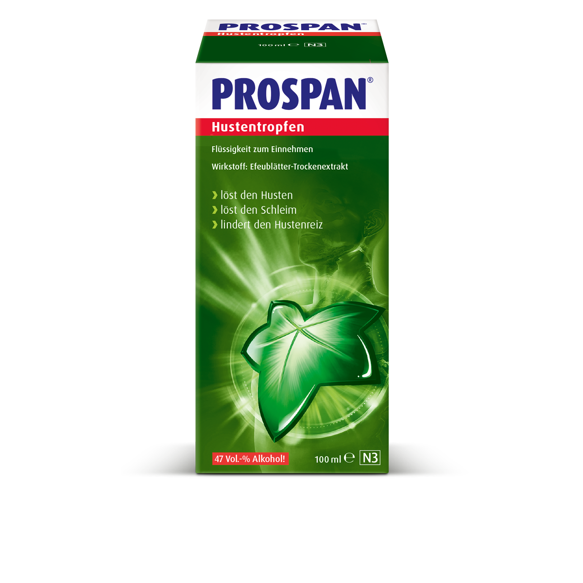 • PROSPAN®. STARK GEGEN HUSTEN: Kleine Flasche, große Wirkung. Die Prospan® Hustentropfen mit dem einzigartigen Efeu-Spezial-Extrakt EA 575® sind hochkonzentriert1 und wirken effektiv bei Husten und Bronchitis. Die Einnahme in Wasser, Tee oder Saft sorgt für zusätzliche Flüssigkeitszufuhr. Das ist grundsätzlich wichtig, besonders aber dann, wenn man hustet oder erkältet ist. Vertrauen Sie daher bei lästigem Husten und akuter Bronchitis auf den Klassiker mit der 4-fach Kraft: die Prospan® Hustentropfen.4-FACH KRAFT: Schleimlösend – Löst den festsitzenden Schleim in den Bronchien und unterstützt so das Abhusten. Bronchienerweiternd – Durch die entspannende Wirkung auf die Bronchien werden verengte Atemwege erweitert, sodass Sie wieder befreit durchatmen können. Hustenreizlindernd – Lindert den Hustenreiz, um schnell wieder ungestört von Hustenattacken in den Alltag zu finden. Entzündungslindernd – Lindert die Entzündung und lässt die Symptome schneller wieder abklingen.