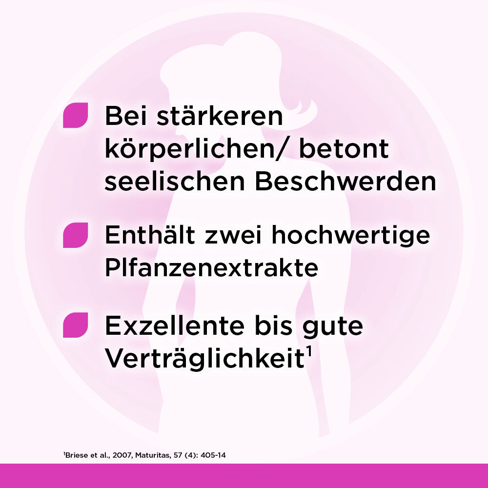 - enthält zusätzlich Johanniskraut, welches auch seelische Wechseljahresbeschwerden wie Stimmungsschwankungen, Nervosität und erhöhte Reizbarkeit bessert