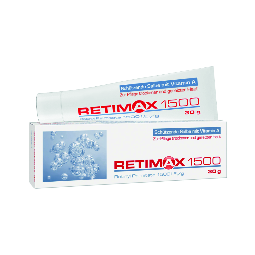 Retimax 1500 ist eine schützende Salbe mit Vitamin A. Sie dringt tief in die Haut ein und dient der Pflege und Beruhigung gereizter und trockener Haut. Retimax 1500 hilft den natürlichen Feuchtigkeitsgehalt, die Elastizität und Festigkeit der Haut wiederherzustellen.