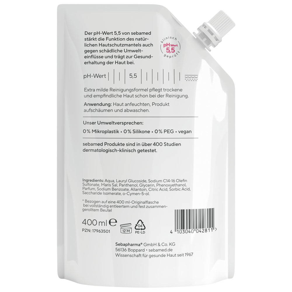 - FÜR GESUNDE HAUT: Der pH-Wert 5,5 von sebamed stärkt die Funktion des natürlichen auch gegen schädliche Umwelteinflüsse und Hautschutzmantels trägt zur Gesunderhaltung der Haut bei