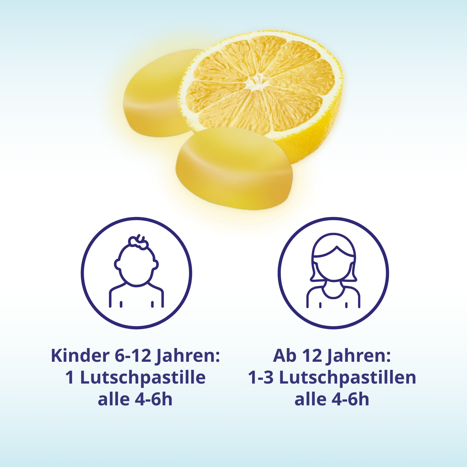 | Kinder von 6-12 Jahren | 1 Pastille | mehrmals täglich (max. 6 Pastillen pro Tag) | im Abstand von 4-6 Stunden, unabhängig von der Mahlzeit |