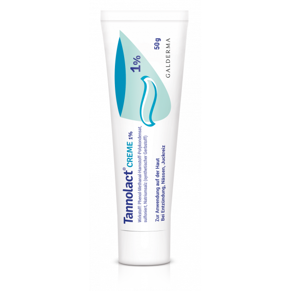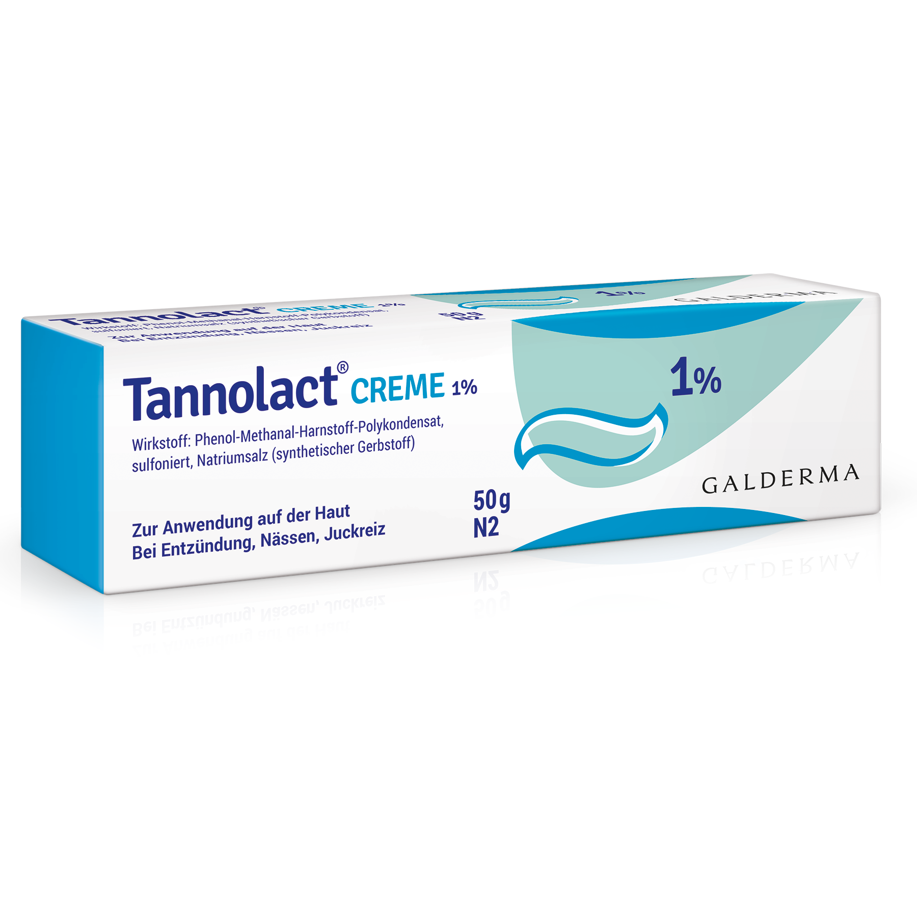 Tannolact Creme 1%. Wirkstoff: Phenol-Methanal-Harnstoff-Polykondensat-Natriumsalz, sulfoniert (synthetischer Gerbstoff). Anwendungsgebiete: bei entzündlichen Hauterkrankungen, die mit Rötung, Nässen und Juckreiz verbunden sind.