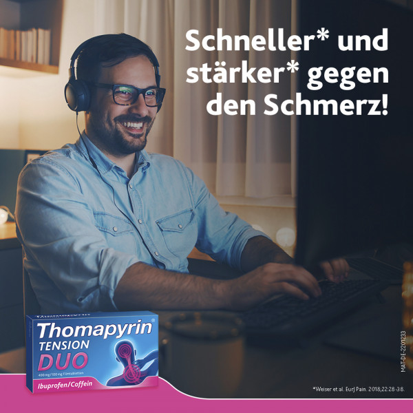 Thomapyrin TENSION DUO ist nur für Erwachsene angezeigt. Wenn Sie sich nach 3 Tagen nicht besser oder gar schlechter fühlen, müssen Sie sich an Ihren Arzt wenden.