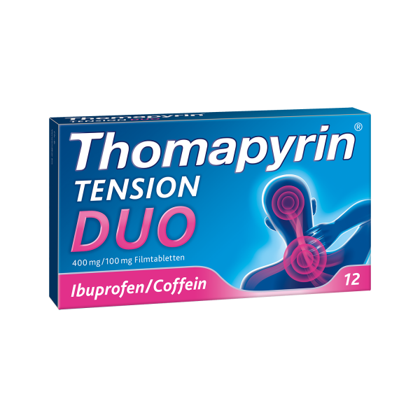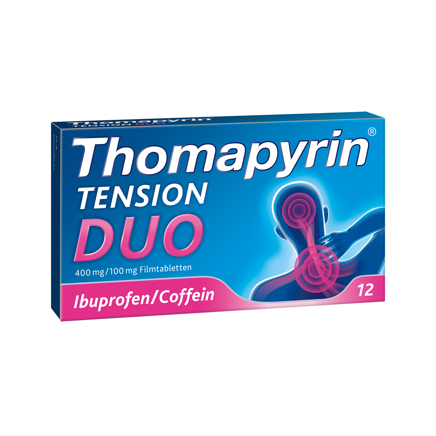 Ibuprofen gehört zu einer Gruppe von Arzneimitteln, die nichtsteroidale Antirheumatika (NSAR) genannt werden. NSAR sorgen für Linderung, indem sie die Art und Weise, wie der Körper auf Schmerzen und Fieber reagiert, verändern. Coffein gehört zu einer Gruppe von Arzneimitteln, die Stimulanzien genannt werden. Thomapyrin TENSION DUO wird zur kurzzeitigen symptomatischen Behandlung von akuten mäßig starken Schmerzen, wie Zahnschmerzen oder Kopfschmerzen, angewendet.