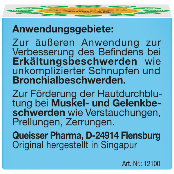 • Der Tigerbalsam hilft äußerlich angewendet bei Erkältungen. Mit ätherischem Pfefferminzöl