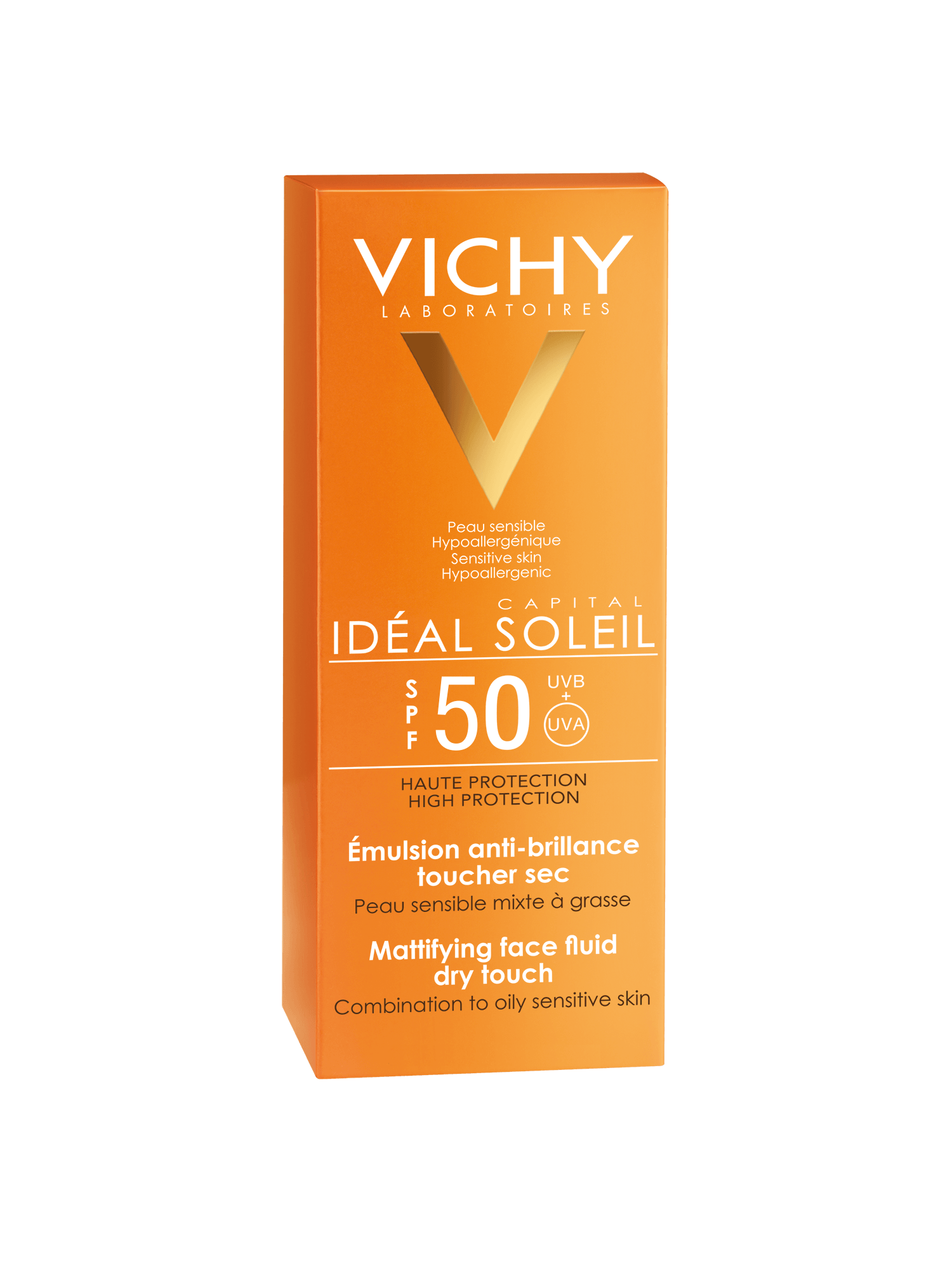 IDÉAL SOLEIL Mattierendes Sonnen-Fluid für Gesicht LSF 50 Schützt vor UV-Strahlen und mattiert Ihre Haut.