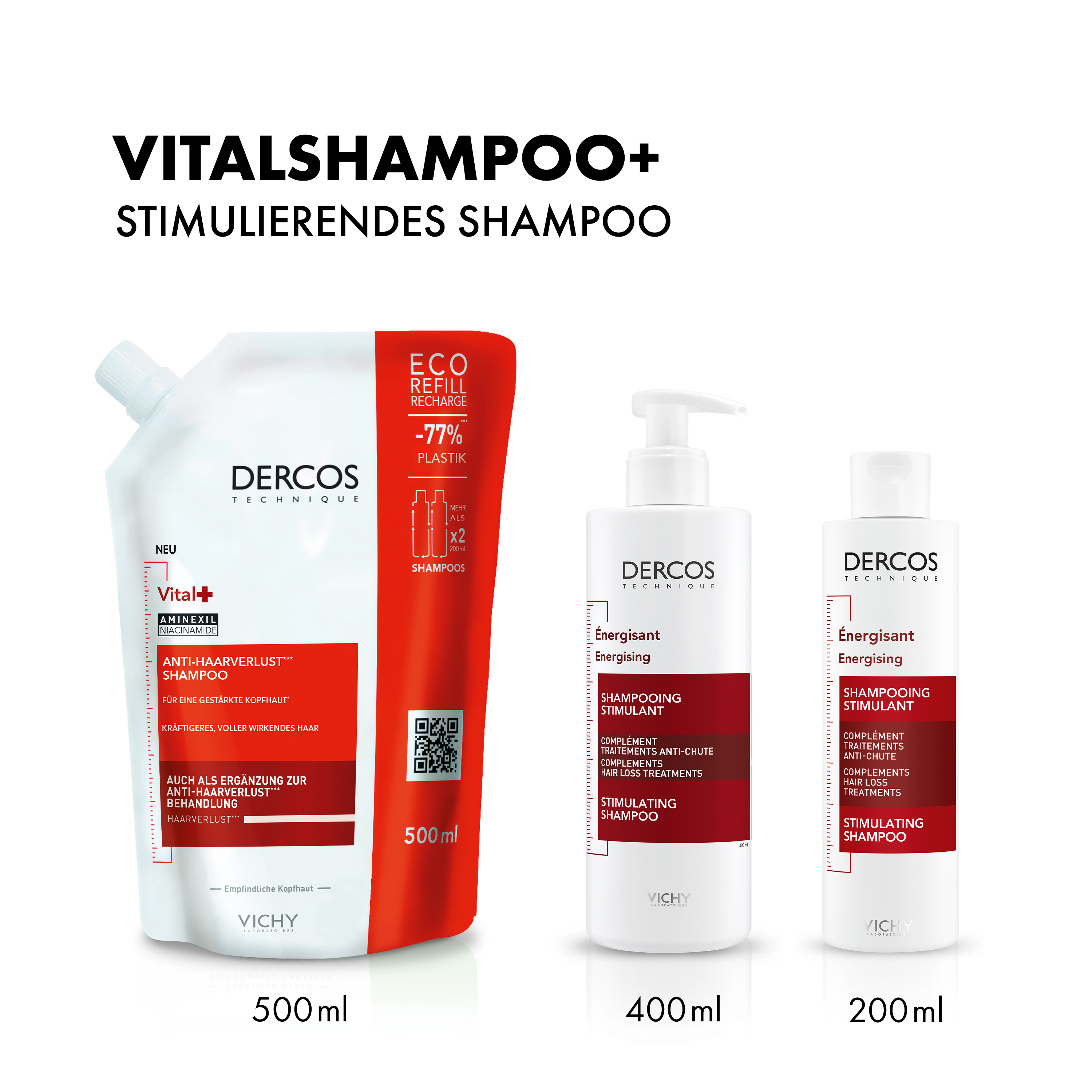 Vichy Dercos Vital+ Anti-Haarverlust Shampoo 500ml Nachfüllpack