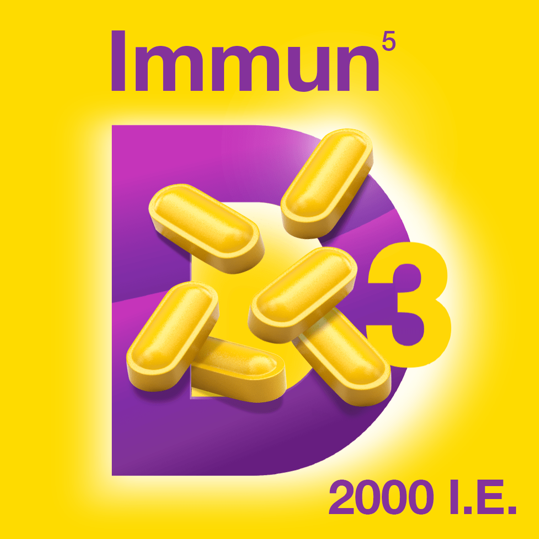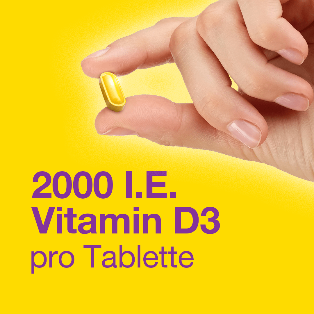 Vitamin D3 spielt eine wichtige Rolle bei der Unterstützung der normalen Funktion des Immunsystems. Zusätzlich schützen die Mineralien Selen, Zink und Kupfer die Zellen vor oxidativem Stress, während Vitamin C dazu beiträgt den normalen Energiestoffwechsel zu erhalten. Diese 5-in-1 Kombination wurde von Ihrem Experten für Vitamin-D-Produkte mit über 90 Jahren Expertise mit dem Ziel entwickelt, die körpereigenen Abwehrkräfte zu unterstützen – damit Sie so aktiv bleiben können, wie Sie es lieben – dank eines gesunden Immunsystems.* *Vitamin D, Vitamin C, Selen, Zink und Kupfer unterstützen das normale Funktionieren des Immunsystems. *Zudem trägt Vitamin D zum Erhalt gesunder Knochen und einer normalen Muskelfunktion bei. Zink, Selen und Kupfer schützen die Zellen vor oxidativem Stress. Vitamin C trägt zum Erhalt eines normalen Energiestoffwechsel bei. **Nicht verschreibungspflichtige Vitamin-D-Produkte, erhältlich in Apotheken. Insight Health; DatamedIQ, 10/2021. Verzehrempfehlung: Erwachsene nehmen täglich 1 Tablette mit Wasser zu einer Mahlzeit ein. Wichtig: Die empfohlene tägliche Dosis darf nicht überschritten werden. Es sollten parallel keine anderen Nahrungsergänzungsmittel oder Medikamente, die Vitamin D, Vitamin C, Zink, Selen oder Kupfer enthalten, eingenommen werden. Menschen mit Nierenproblemen, erhöhtem Kalziumspiegel (Blut oder Urin) oder einer Neigung zur Bildung von Nierensteinen sollten mit ihrem Arzt sprechen, bevor sie Vitamin-D-Präparate einnehmen. VIGANTOLVIT® IMMUN ist ein Nahrungsergänzungsmittel für Erwachsene. Nahrungsergänzungsmittel sind kein Ersatz für eine ausgewogene, abwechslungsreiche Ernährung und eine gesunde Lebensweise. - Für Kinder unzugänglich lagern. - Trocken lagern. - Nicht bei Temperaturen von über 25 °C lagern. - Weitere Informationen finden Sie unter www.vigantolvit.de