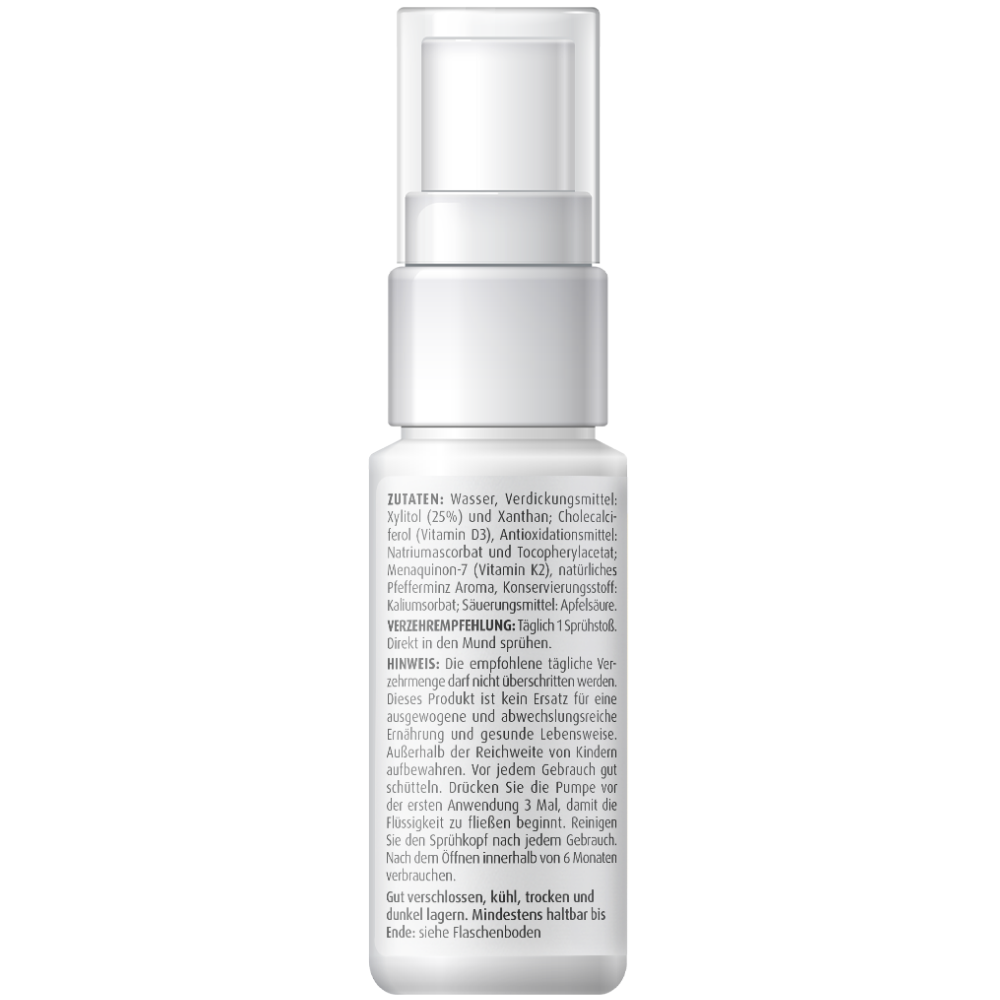 - Optimal dosiert: In nur einem Sprühstoß sind 1000 I.E. Vitamin D3 und 15 μg Vitamin K2 zur Deckung des Tagesbedarfs enthalten