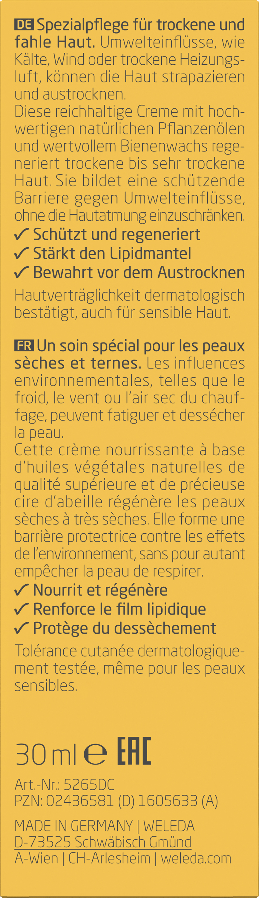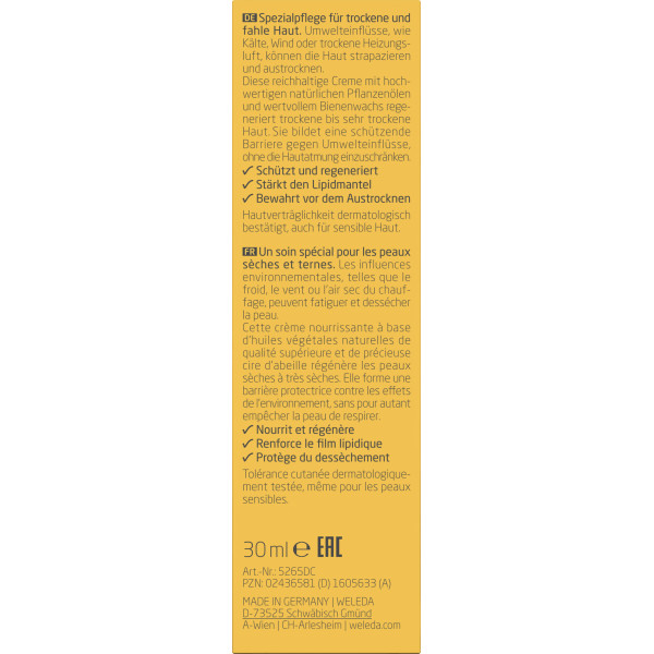 Weleda Coldcream Naturkosmetik Gesichtscreme zur intensiven Pflege von trockener bis sehr trockener Haut, pflegt & regeneriert • Pflegt und schützt intensiv • Stärkt den Lipidmantel der Haut • Hautverträglichkeit dermatologisch bestätigt • Bewahrt die Haut vor dem Austrocknen +48% mehr Hautfeuchtigkeit* Gemessen nach 4 Wochen im Anwendertest bei 2-mal täglicher Anwendung. Beschreibung: Bewährter Schutz vor belastenden Umwelteinflüssen: die reichhaltige Weleda Coldcream stärkt den Lipidmantel und pflegt trockene bis sehr trockene Haut intensiv, ohne dabei die Hautatmung einzuschränken. Reine Pflanzenöle und wertvolles Bienenwachs stärken den Lipidmantel und bewahren so die zarte Gesichtshaut vor dem Austrocknen. Natürliche ätherische Öle geben der Weleda Coldcream die feine Duftnote. Die Haut fühlt sich wieder weich und geschmeidig an und sieht gepflegt aus. Was bedeutet Coldcream? Der Begriff Coldcream klingt nach Kälte. Tatsächlich handelt es sich dabei aber um die traditionelle Bezeichnung für Creme-Rezepturen mit Bienenwachs und besonders hohem Fettanteil, die beim Verteilen auf der Haut einen kühlenden Effekt haben. Bereits in der Antike wurde eine Creme hergestellt, die als Vorfahr der Coldcream gilt. Wie damals enthält die Weleda Coldcream natürliche Pflanzenöle und Bienenwachs. Wertvolles echtes Rosenöl verleiht ihr einen feinen Duft. Die Coldcream ist nicht als Kälteschutzcreme konzipiert. Auch wenn es aufgrund ihres Namens zu diesem Glauben kommen kann, ist die Formulierung zur intensiven Pflege trockener Haut gedacht. Als Schutz vor Kälte eignen sich wasserfreie Produkte. Wir empfehlen den wasserfreien Calendula Wind- und Wetterbalsam, der zarte Gesichter und Hände zuverlässig vor Kälte und rauer Witterung schützt. Anwendung Morgens nach der Reinigung und Tonisierung sparsam und gleichmäßig auftragen.