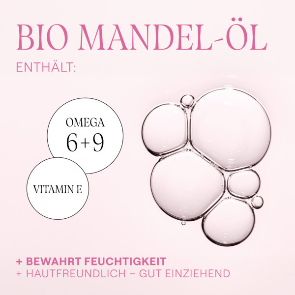 Wasser/ Quellwasser, Mandelöl+, Alkohol, Fettsäureglyzerid, Bienenwachshydrolysat, Pflaumenkernöl, Glyzerin, Xanthan, Milchsäure