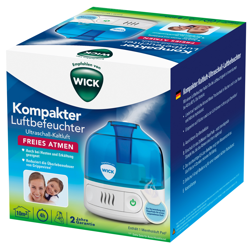 Optimale Luftfeuchtigkeit und angenehme WICK-Dämpfe für Linderung bei Husten und Erkältungsbeschwerden und für einen guten Schlaf